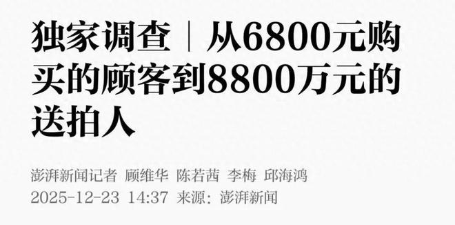 6800元能买什么?一部手机、一件外套,还是一顿丰盛的晚餐?媒体报道截图 但20多年前的南京,有人以此价格买下一幅明代名画,估价8800万。 《江南春》画卷原价6800元,售价8800万元。在这根增长一万多倍的管道背后,有一个让你深思的故事。今年5月,网友们对一幅画揭示的惊人秘密进行了评论。在北京某拍卖行的预展上,一幅明代仇英的《江南春》长卷起拍价8800万元,吸引了众多参展商驻足观看。观众中有一位女士看到这幅画后愣住了。他叫庞书令,是近代第一收藏家庞来臣的曾孙。现代收藏家庞来臣对这幅画非常熟悉。 1959年,他的f阿瑟将这幅画与137件珍品一起捐赠给南京博物院。有些人可能会问,这是一个错误吗?毕竟60多年过去了,记忆难免有偏差。但庞书岭确信这一点——捐款时,政府开具的黑白收据和证明还藏在庞家中。那么,捐赠给国家博物馆的藏品为何最终进入拍卖行呢?庞书岭立即将政府颁发的奖状上报文物部门,拍卖随即停止。但当他按约定时间去南博考察当年捐赠的藏品时,工作人员却拿不出《江南春》这幅画。更令人惊讶的是,随后发生的事情是:原来捐赠的137幅古画,只剩下132幅,总共少了5幅。说到这里,就不得不提到南波给出的解释。 “赝品”遭遇的奇异之旅南博提出了一套论据:这五幅画早在20世纪60年代就被专家认定为“赝品”,不符合收藏标准。最终按照程序进行“分配和排序”。他们还从媒体报道截图中找到了一张2001年的销售发票,发票显示,这幅《仿秋英山水卷》售价为6800元,买家一栏写着两个字——“顾客”。 2001年的销售发票只有两个字,没有名字,也没有联系方式。国营博物馆把收藏的文物扔掉了,我只是被骗了买家信息?这里有什么奇怪的,有识之士一看就知道。首先,庞来臣是谁?他是清末民国重要的收藏家之一。他的《虚斋》藏品现散布于故宫、上博、苏堡,其中不少为博物馆珍品。马未都说,一个收藏家会把赝品当作传家宝吗?其次,即使退一步说,这幅画确实是复制品,而且能复制到跟真品一样的程度,也说明画家的功力相当不错,绝对不是2001年6800元就能买到的。更耐人寻味的是时间线。 1997年,南玻报道称,此画将献给省文物商店。谁签署了批准书?时任校长徐虎平 时任南京大学副校长徐虎平还有另一个身份——江苏省文物商店法定代表人。用左手批处理,用右手收集。这个操作确实很有趣。十七年的报道为何毫无结果?事实上,在这件事发生之前,南博内部就有人知道这个问题。 2008年6月,徐沪平退休当年,42名员工集体到公司报到继承人上级反映文物去向不明、账目混乱等问题。本报道材料进一步刊登于新华社内参。结果如何?没有回应。员工曾于2012年和2014年举报徐虎平,举报人多次补充信息,但得到的仍然是“沉默”。而这种沉默持续了17年。今年12月21日,继南京江南之春事件后,69岁的退休职工郭立典终于忍不住再次举报。退休员工郭立典举报称,他在镜头前出示工作证件,并向原院长徐虎平举报了自己的真实姓名,涉嫌“有组织、有计划、大规模盗窃、走私文物”。很多人可能对郭立典并不熟悉,但他在南博收藏部工作了42年,亲眼目睹了无数文物的流转。郭立典在报告中详细描述了一条“产业链”:先让专家鉴定真品是赝品,然后低价转移到文物商店,再卖给泛拍卖公司介入,转眼就赚取了数百倍的利润。郭立典的举报信中还提到了一个关键人物——被免职的江苏省检察院反腐败主任韩健林。据说,徐沪平多次向他展示字画,两人关系密切。媒体报道截图 这就解释了为什么17年来42人的联名举报被压制——有人“掩盖”,举报信自然就消失了。但报告信的内容不能被论文涵盖。随着拍卖事件的曝光,舆论一片哗然,事情已经无法遏制。调查组进场后的新进展和舆论压力意见终于搬动了这块巨石。 12月23日,国家文物局宣布成立工作组赴南京核查;同日,江苏省委、省政府也组成了纪委、公安、文化和旅游等部门涉及的联合调查组,表示“他们不会容忍这种事情”。当地已成立调查组负责调查。 82岁的徐虎平起初想与这段关系保持距离,称自己“不是书画分析专家”,而且“已经退休20年左右,不参与外界事务”。徐沪平回答说,1997年的文物移交文件中,“批准”一栏白纸黑字地签下了他的名字。怎么解释呢?徐沪平签名 有知情人透露,前两天中午,徐沪平夫妇在重新从南波旁边的别墅搬走。他们被便衣包围,记者前去拍照。按理说,事情到了这个地步,应该是在往好的方向发展。但谁能想到,徐沪平被撤职后不到12小时,“恶心”事件接连发生。举报人遭遇一系列威胁。据《亚洲周刊》报道,12月24日,举报人郭立典接到多起来自南京、江苏、兰州、甘肃等地的恐吓电话。 《亚洲周刊》报道的截图还不止于此。他之前发布的举报视频在上线后数小时内就被删除;此前,他还接到过骚扰电话,打了五通电话都没有任何口碑就挂断了。一位年近七十的老人只想说出自己亲眼所见的真相,却得到了这样的待遇。媒体称郭立典收到威胁电话庆幸的是,调查组反应很快。早上8点,郭利典被带到江苏省委招待所西康宾馆接受询问,这也是一种保护。据媒体报道,徐沪平被带去调查,恐吓电话只能说明有人焦急害怕。十七年前我本可以阻止这份报告,但现在我无法阻止。随着调查的深入,这起事件似乎打开了潘多拉魔盒,越来越多的知情者开