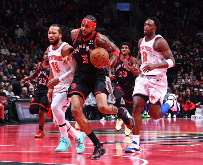 北京时间12月10日,NBA杯四分之一决赛,猛龙队以101-117击败尼克斯队,惨遭淘汰。猛龙队对阵尼克斯队惨遭10连败。本场比赛,猛龙队领先6分,但在第二节中段开始下滑。第二节他们以13-34落后。第三节结束后分差并未缩小。末节比赛很快进入垃圾时间。猛龙队剩下的球员仍然无法击败全阵容的尼克斯队。猛龙队整个赛季已经连续输给尼克斯队10场。此役之后,首场NBA半决赛出炉,魔术队对阵尼克斯队。首节一开始,两队主力球员展开对决。两名球员都打了12分钟。布伦森9投7中,三分球6中4得到20分2助攻。英格拉最后时刻拿下17分3篮板2助攻2抢断,帮助猛龙队取得领先第一季度。第二节,英格拉姆休息,猛龙队以12-4领先。英格拉姆登场后,尼克斯队的气势显露出来。本节尼克斯打出34-13净胜21分。英格拉姆在第二节也3投0中,找不到手感。英格拉姆半场得到19分,是猛龙队的最高得分。第三节,两队分差拉大到20+。英格拉姆奋力坚持。英格拉姆单节又打满12分钟。三分球4投3中,三分球2投2中得到8分3助攻2篮板。三节打完,拿下27分6篮板6助攻2抢断。不过,球队两队的分差仍然是19分。现场录像显示奎克利和巴雷特看上去都很无助。节末,巴恩斯快攻正要扣篮却被布伦森拉倒,但裁判没有判犯规。粉丝现场大呼裁判很差劲。英格拉姆上篮被唐斯封盖。英格拉姆两次中投命中,完成30+,但尼克斯两记三分回应。比赛还剩3分钟时,英格拉姆被要求继续比赛。到达法庭后,他感觉自己闭上了眼睛,离开了。猛龙队仍然成功渡过了进攻。尼克斯队开始浪费时间,猛龙队放弃了比赛。整场比赛,英格拉姆出战39分钟,得到31分7助攻6篮板2抢断,18中11,三分球5中3,罚球8中6,投篮命中率61.1%,三分命中率60%,投篮命中率-4。没有了奎克利和巴雷特,只有英格拉姆活不下去,巴恩斯18投6中。